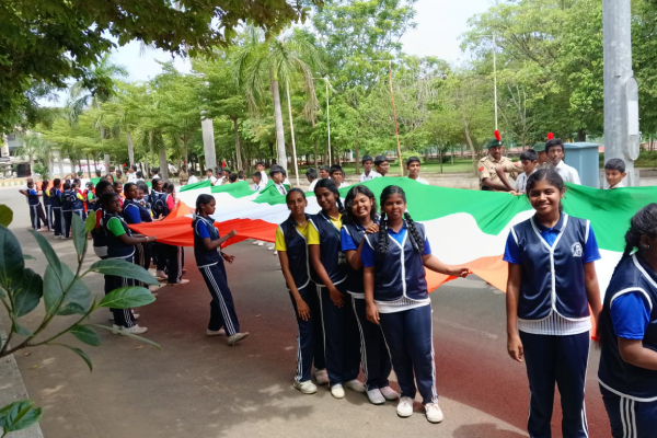 Meanwhile, students from Grades VIII to XII took part in a grand celebration hosted at Sri Sairam Engineering College, where they joined hands in a historic moment—carrying a 1-kilometer-long Indian Flag, symbolizing the strength and spirit of our nation. Their participation in this monumental event was not just a tribute to our freedom fighters but also a proud step into history. Together, these celebrations echoed the message of unity in diversity and the power of young minds to honor and uphold the legacy of our great nation. Jai Hind